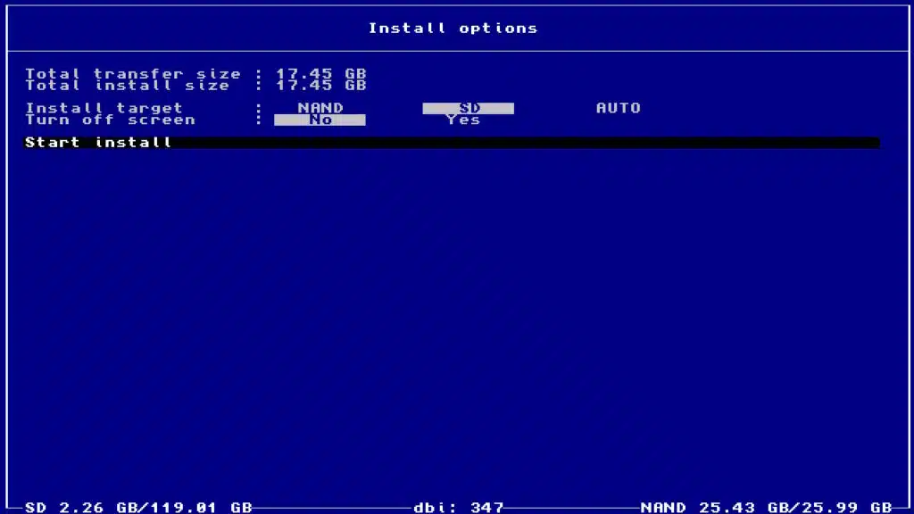 Une fois fait, sur la switch rendez vous dans Install title from USB