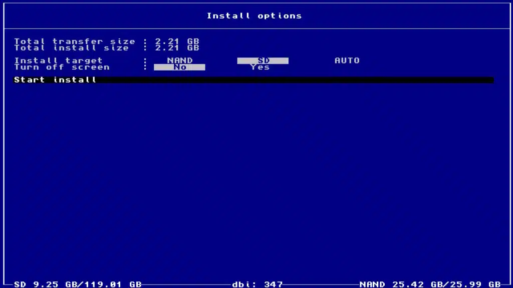 Lancez l’installation de la maj avec A et faite pareil sélectionnez toujours la carte SD